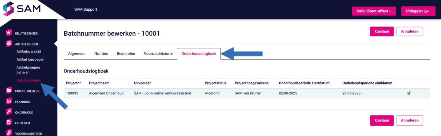 In SAM kun je dit eenvoudig terugvinden via het onderhoudslogboek.