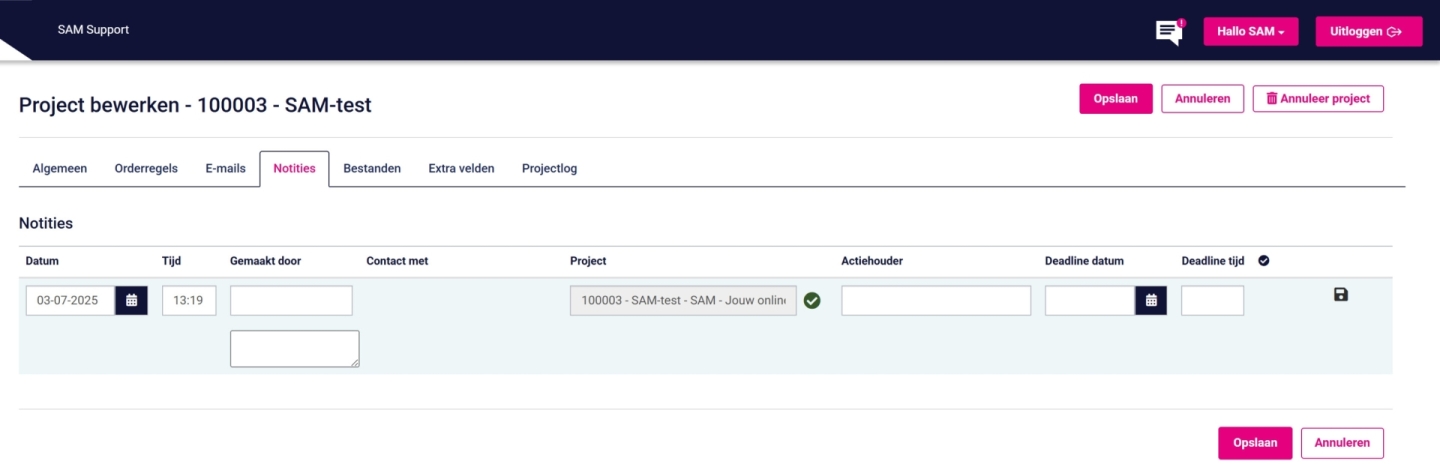 Onderhoud Project bewerken