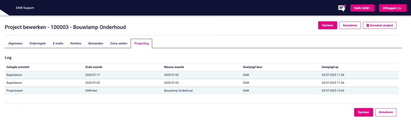 Bekijk hier alle wijzigingen en activiteiten binnen het onderhoudsproject.