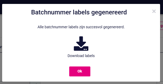 - Klik op het prullenbakje achter een batchnummer om hem te verwijderen. Je krijgt vervolgens een melding om het verwijderen te bevestigen. Zodra je hier op 'OK' klikt, is je batchnummer definitief verwijderd.